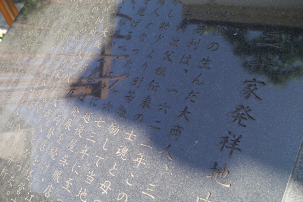 あのみんなが(銀行等で)お世話になってる三井家の発祥の地だそうです。中はのぞけないので、そのスポットがあるだけ…といったところ。旧家の建ち並ぶエリアにあるので、ちょっと通ることになるとは思いますが、しいてここをわざわざ訪れるほどのところでもないかな?とは思います。
