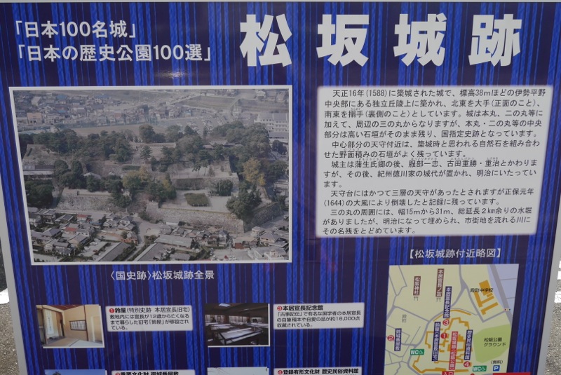 松阪のシンボル的な建物です。日本の百名城にも選ばれているらしいこの松阪城。小高い丘の上にあるので、のぼっていくのはいささか大変ですが、のぼりきると達成感があります。城内はそこそこに広く、展示物も多岐にわたりあるので、限られた時間で観光する際はあらかじめメインにするところを絞ってゆくといいと思います。
