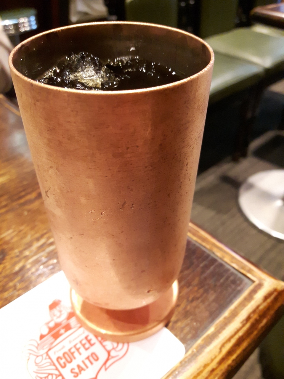 室町から神田駅に向かう途中でふと立ち寄りました。アイスコーヒーは深めに煎った濃いめの味。キリッと冷やした銅製のマグカップに入っていて、美味しいです。店内は豆を挽くいい香りに満ちていて、ゆったりした時間を楽しめます。