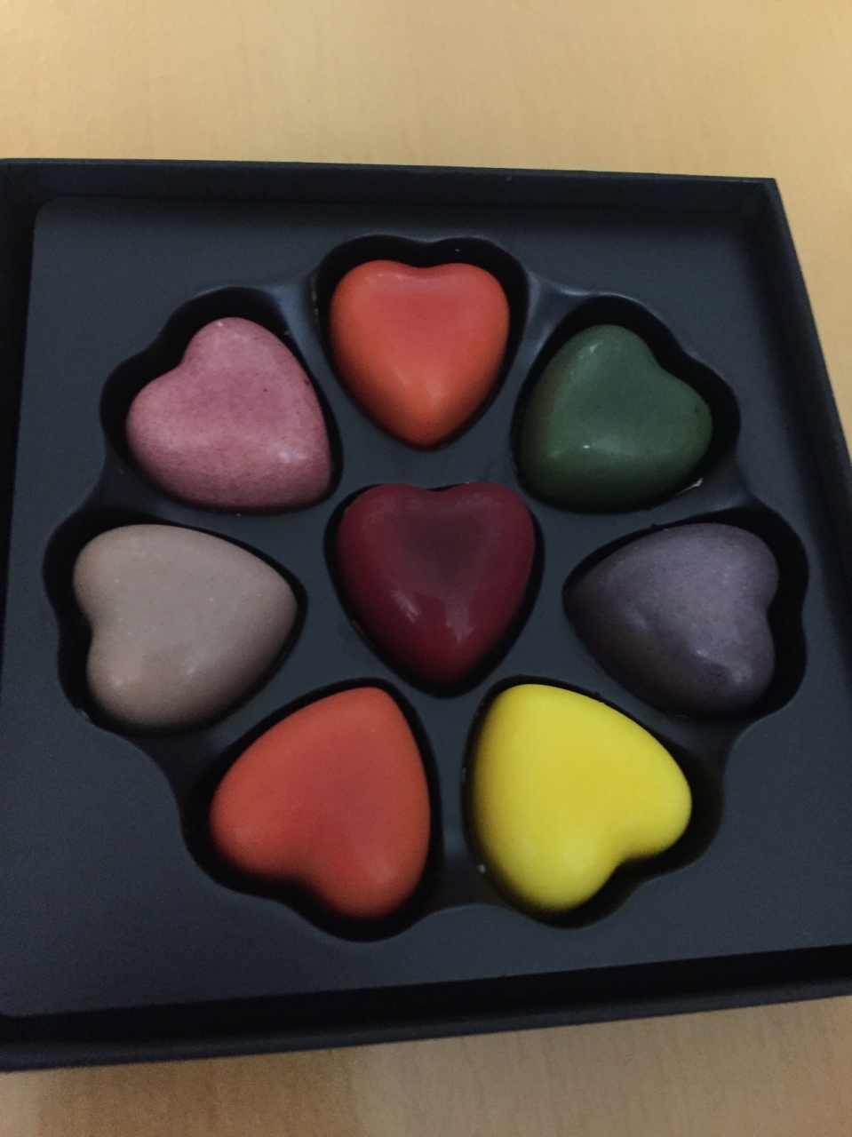 先日ずっと食べてみたかったチョコレートを頑張った自分へのご褒美に購入しました。かなり高級なので気軽には購入出来ません。綺麗な色で何味か食べるまで分からずワクワクしました。とても美味しくいいご褒美になりました。
