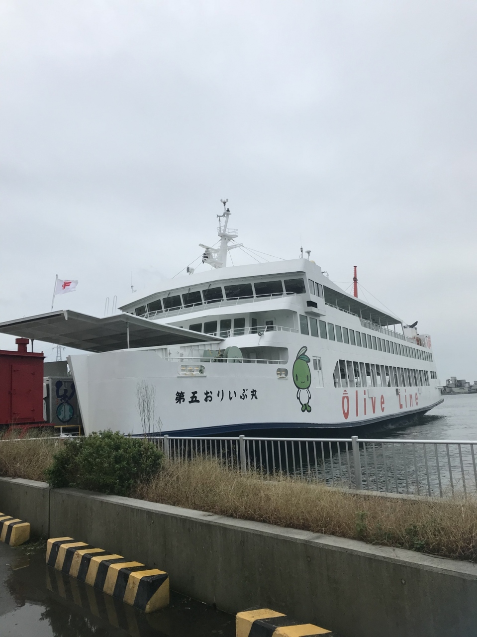 小豆島に向かうのに姫路港から出発しているフェリーです。チケットは40分前から購入できます。きれいなフェリーで客室も広くて清潔です。大きなテレビもありゆっくりくつろげます。清潔感もあり、快適で良い感じでした。