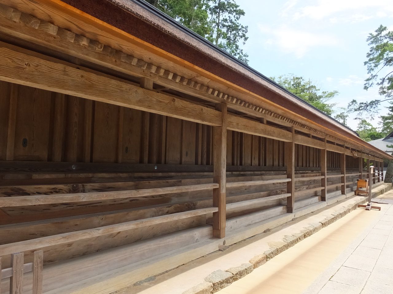 出雲大社の本殿の左右の細長い建物。東と西でワンセット。ひとつの建物に19の扉があって、合計38個の扉が。なので一時期は38社という1個の建物だった時代もあるという説もあります。