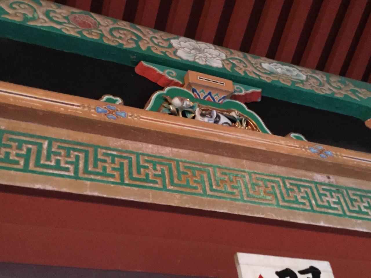 日光東照宮の中でも「見ざる、聞かざる、言わざる」の3猿などと並んで最も有名なスポットとされるこの眠り猫でしたが、意外と小さく、最初は気づきませんでしたが、周りの人が上に向かってカメラをむけていたのを見てやっと気付きました。