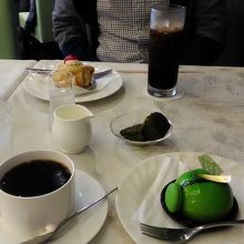 イートインを利用しました。少し、お茶には早い時間だったからか、土曜日なのに、カフェはすいていました。飲み物は、平日では色々種類があるみたいですが、土日は、コーヒー、紅茶、ジュースだったかな?から選ぶ事になります。ケーキの名前は忘れましたが、飲み物とセットでケーキが、割引になり、私は、625円、同伴者は560円という驚きの安さでした。ケーキはちゃんとおいしかったです。コーヒーもアイスとホットを注文しましたが、おいしかったです。また訪問したいお店です。