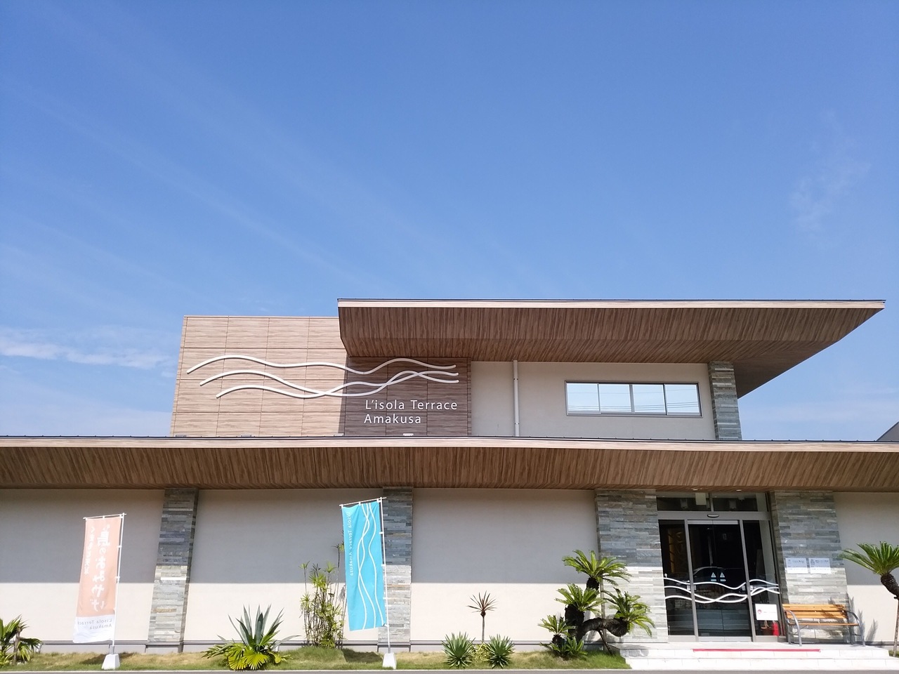 宿泊したホテルから彼がウォーキングに出かけて、帰ってきたときに「近くに何か売店みたいなのがあるよ」と言い出して、じゃあ行ってみようということになりました。確かに車でホテルから5分くらい。天草五橋の4号橋のすぐそばにあります。駐車場がとても広く、建物が低いせいか青空がぐんと高く見えて夏の匂いがしました。売店には天草の加工品や特産品などがたくさん販売されています。このリゾラテラス天草限定の商品などもありました。そして、併設されているパン屋さんで人気だという塩パンはしっかりゲットしてきました。