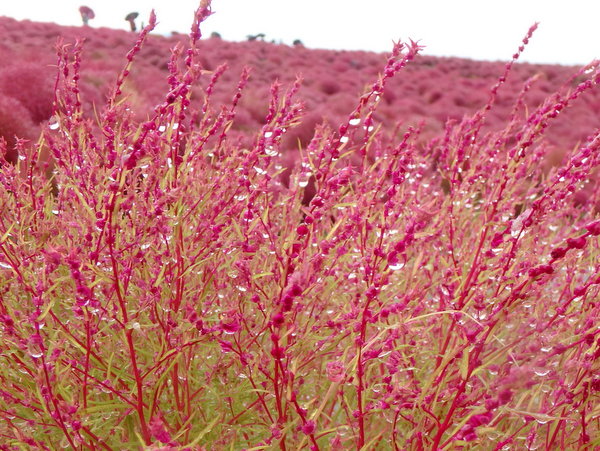 風でコキアが斜めになっているのをみて、頑張ってるな―と思いました。