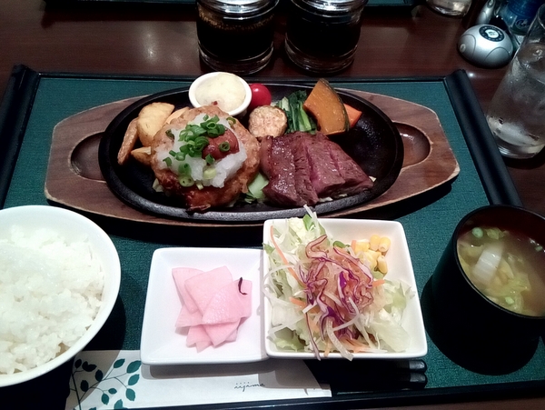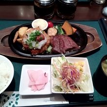 ローズポーク入りのハンバーグと、常陸牛のももステーキ。