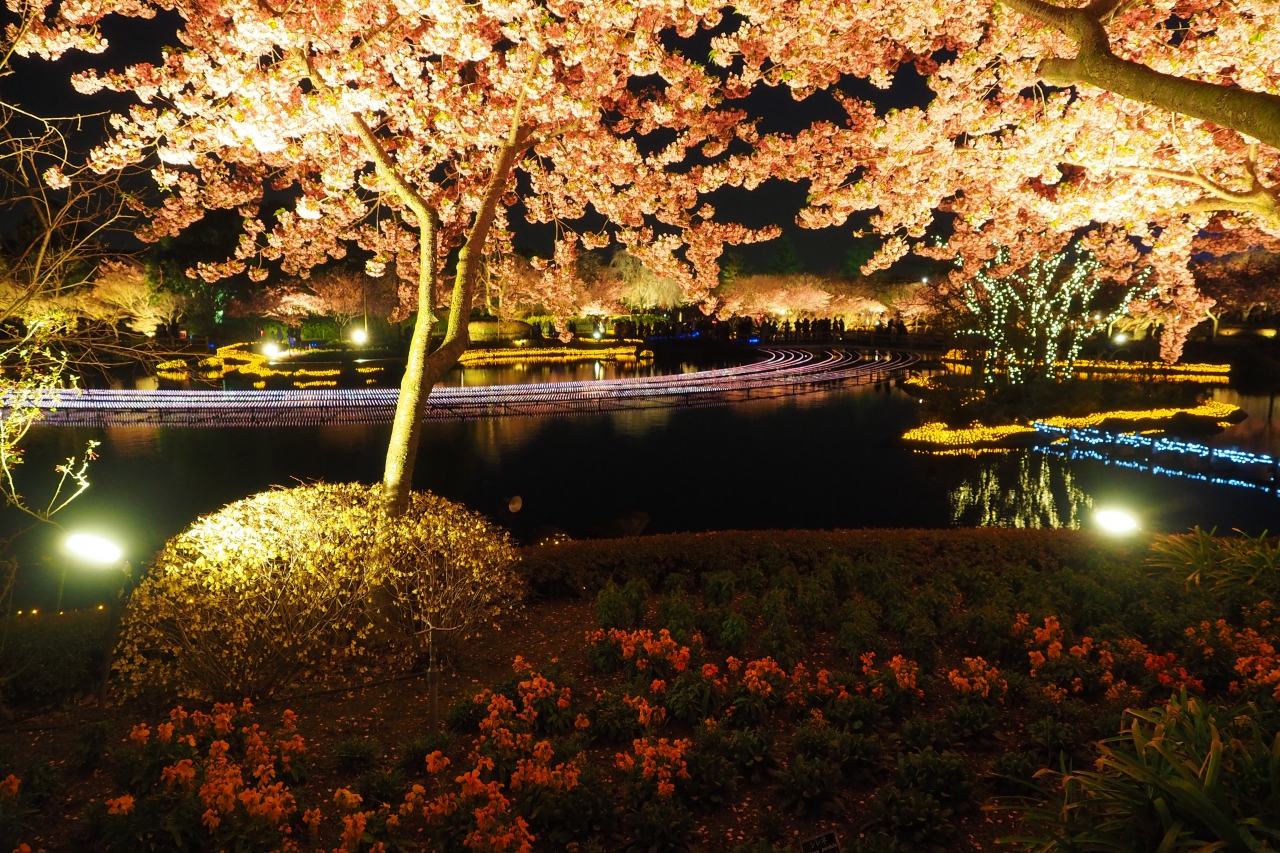 3月下旬の3連休、しだれ梅と河津桜とイルミネーションが見られる時期に行きました。