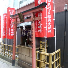 その中でも「あづま稲荷神社」は、とてもコンパクトです。小さな鳥居ととても小さな祠がわずかな面積に収まっています。その小ささと、赤い幟が印象に残りました。
