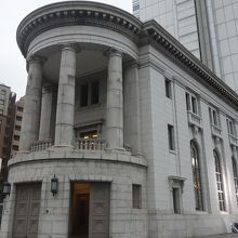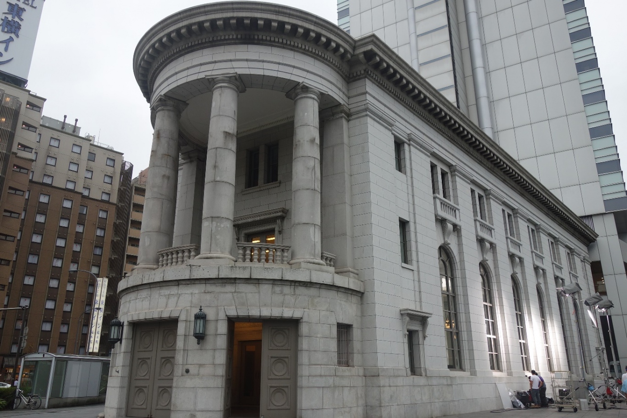 歩く者の目線からは重厚な歴史を感じる建築が目に入りますが、上を見上げると現代建築のビルがその上にそびえている、何ともユニークな建物です。この地域には歴史上重要な建物をこのような形で残している場所が幾つかあります。見学した際にはちょうどドラマの撮影が行われていました。