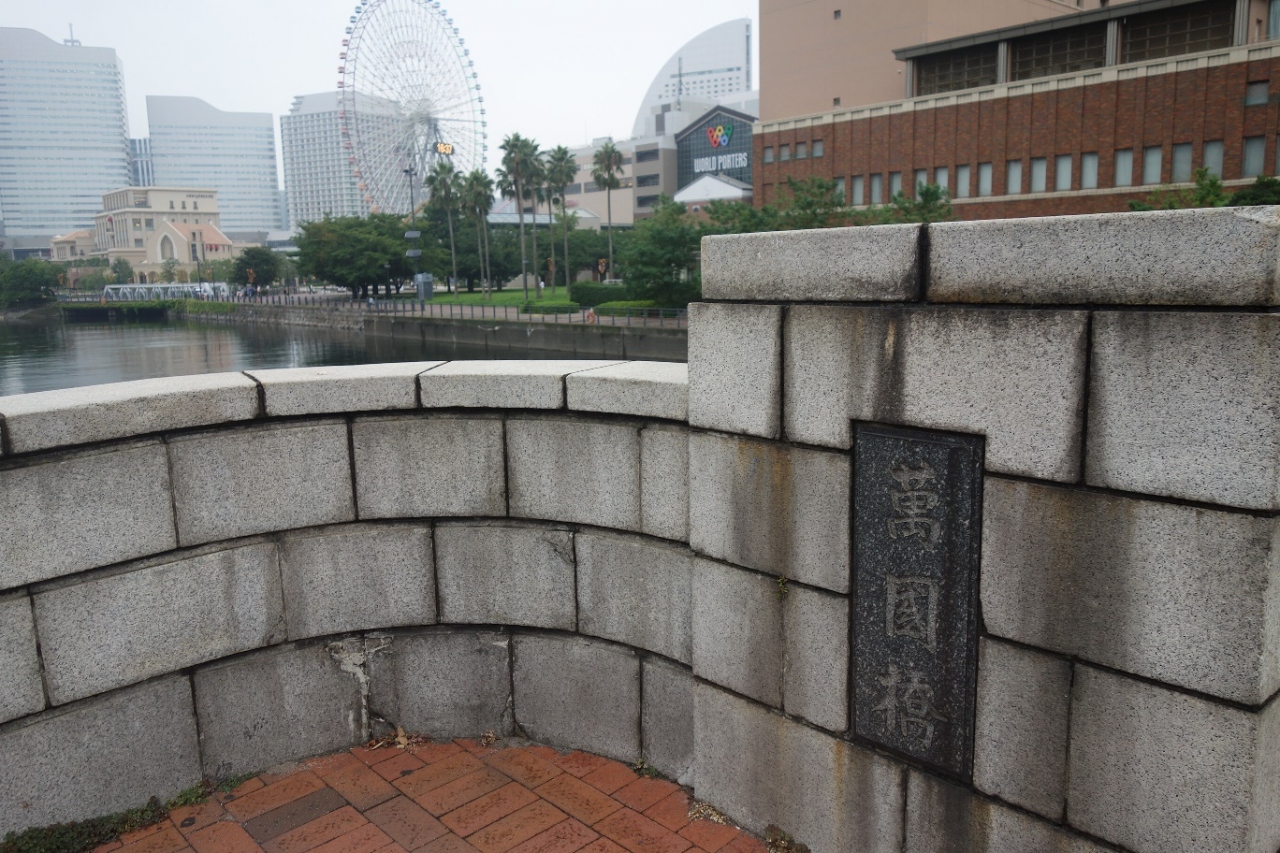 横浜の馬車道界隈を散策した後、歩いて赤レンガ倉庫の方向へ向かいました。途中、運河が有りその上を架かる橋を渡った時に見つけた萬國橋の標識。広い通りでゆったりしており橋自体には特に特徴が無いので車などだと見つけられないかもしれませんが幸い徒歩だったので気付きました。