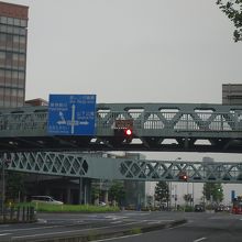 宇宙船のようなデザインの歩道橋