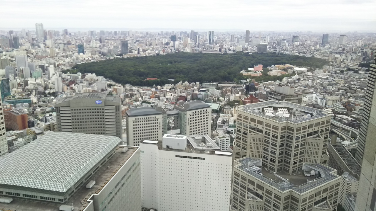 新宿の東京都庁では、展望台が無料で開放されています。特徴的な形ものですが、右側と左側両方に展望台があり、どちらとも無料で入ることができます。新宿御苑や新宿の街並みを眺められる、無料とは思えない景観でした。