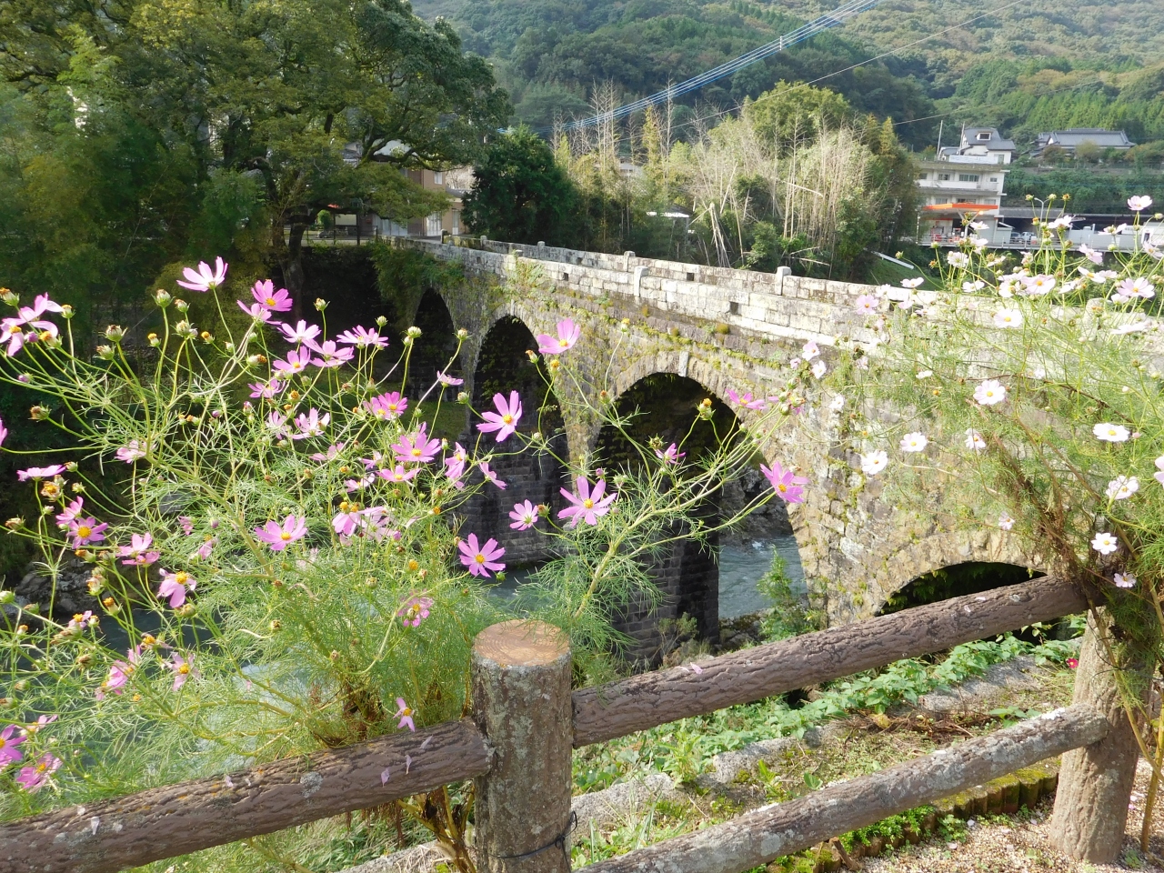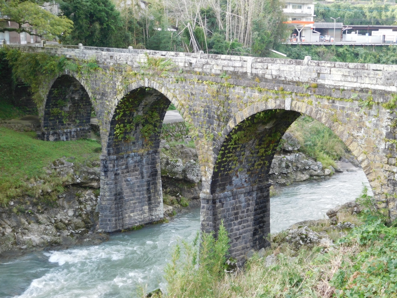 日本一の石橋の町「大分県宇佐市院内町」にある石橋の一つで、「石橋の貴婦人」とも呼ばれている、美しい石橋です。道の駅いんないから、宇佐神宮方面へと向かう途中で、立ち寄りました。橋の上を歩いて渡り、反対側の階段を下りて行って見たり、いろいろな角度から見る事が出来てとても良かったです。夜に再び通ってみると、ライトアップされていて、昼間とは違って幻想的な感じが又良かったです。