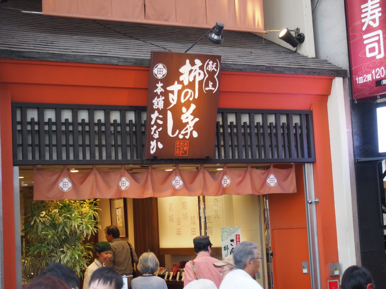 奈良の名物グルメである柿の葉寿司の店です。柿の葉寿司のたなかの店は奈良市内にはいくつかの店舗があるようです。観光後の帰りに近鉄奈良駅のすぐの東向商店街(アーケード)にある店に立ち寄りました。こちらがたなかの本店のようです。すしに使われる魚は鯖、鮭、アナゴなどいくつか種類があります。店の奥の方ではイートインスペースがありました。