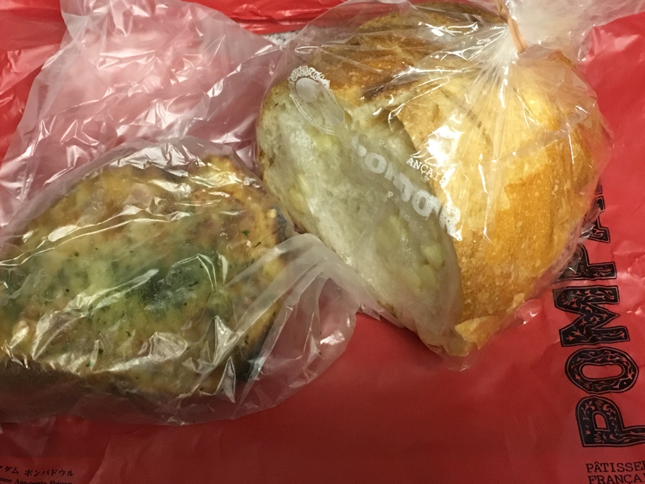 アンテンドゥの惣菜パンにするか?ポンパドウルのフランスパンにするか?結論は美味しいからどちらでもいい。