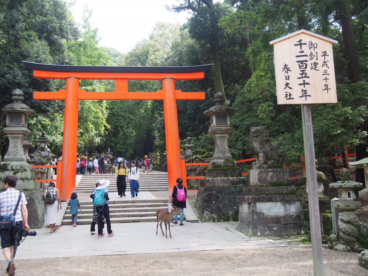 春日神社の境内にある鳥居のひとつです。春日神社の南の端にある一の鳥居から歩いてきて次にある鳥居です。一の鳥居と二の鳥居のあいだは比較的平坦な道ですが、けっこう距離があります。この鳥居からは少しゆるやかな坂道になってきます。また社殿などの建物も多くなってきます。いよいよ春日神社の本殿へと近付いてくると、気持ちが高まってきます。
