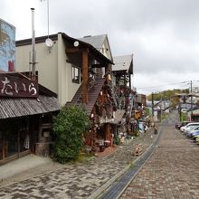 短い坂の両側にアイヌの民芸品を売る店が並びます。ここだけ雰囲気が異なります。