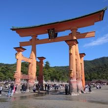 厳島神社の大鳥居です。とても有名なので、特に説明は不要でしょう。行った日はとても晴れていたので、鳥居の赤さが青空に映えて、とても綺麗でした。