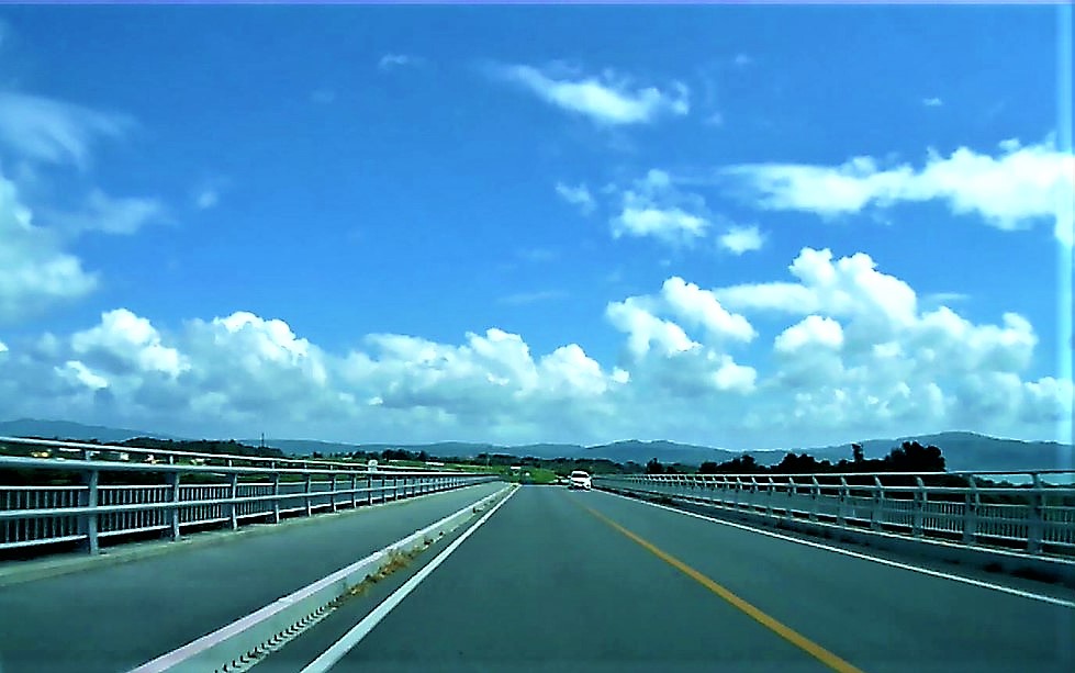 今帰仁城跡を見に行った後にレンタカーで古宇利島に行くため、ワルミ大橋を渡りました。渡っている時間はほんの少しでしたが、ワルミ海峡風景を見ることができました。また、この日の天気が良かったため、一瞬でしたが古宇利島を見ることもできました。
