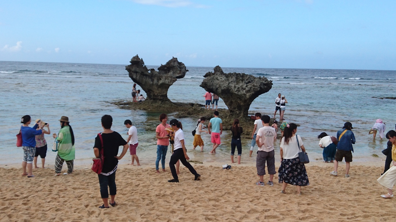 ロートロックを見に行くためティーヌ浜に行きました。有料駐車場に停めて向かいますが細い道を進まねばならず、さらには急な坂や段差があったのでティーヌ浜にいくまでが大変です。ティーヌ浜に行くとハートロックを見るため、多くの観光客が来ていました。ハートロックを見ることができて良かったですが、ティーヌ浜の砂浜は柔らかくぬかるんでいたため、歩くだけでも苦労するだけでなく、靴の中が砂まみれになりました。