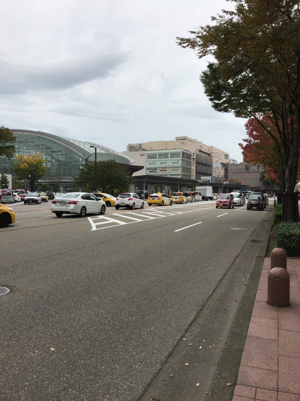 金沢駅前から、百万石通りを歩いて近江町市場に行き香林坊に行き、その後兼六園、ひがし茶屋街と歩きました。一本道でわかりやすいです。道中は紅葉がキレイだったり、おしゃれなショップや和菓子のお店や雑貨屋があったり、歩いているだけでとても楽しい通りです。