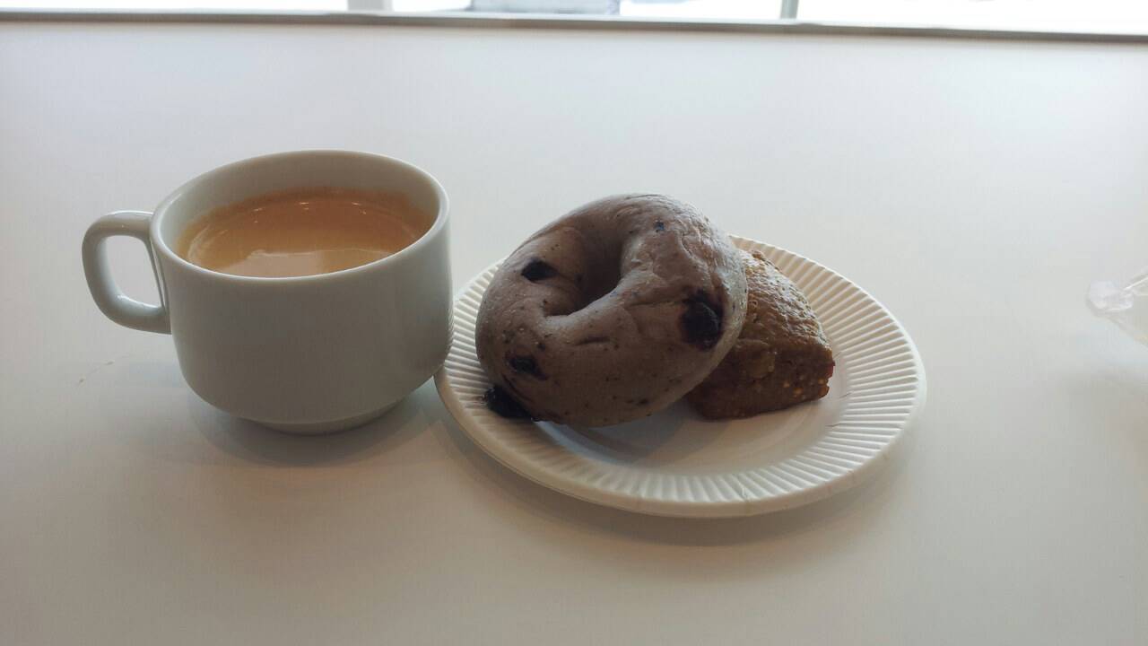 羽田空港第2ターミナルにある エアポートラウンジに行ってきました。新しく大きな窓から飛行機を眺めながらコーヒーを飲むことが出来ました。朝のフライトだったので 1人2つのパンも頂いて やったりとした朝ごはんとなりました。
