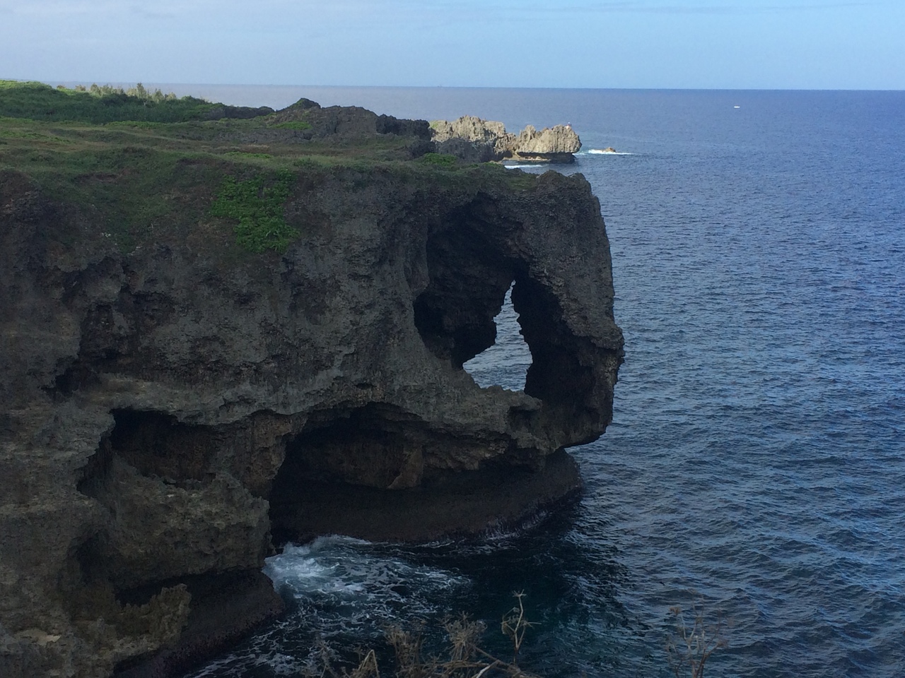 今まで、象の形をした岩が万座毛と呼ばれていると思っていたのですが、ガイドさんからその周辺に広がっている草の原っぱを万座毛と呼ぶんだということを教えて頂きました。知らなかったぁ。