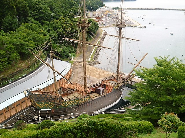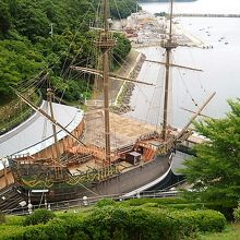 支倉六右衛門常長が欧州に行った時、船の名称が`サン ファン バウティスタ艇`でした! 艇本体とサン・ファン館も含めての[サン ファン バウティスタ パーク(公園)]です。館/食堂棟も開いていて小高い丘も芝生広場/植木/階段/駐車場も新しいものでした。`夢をかなえる鈴`はピッタリですね(伊達政宗の思い/支倉氏が欧州に,,) 上から見るとサン ファン バウティスタ艇全体像が分かり、エスカレーターで下に降りると大きく構造が見えて`世界一周艇`の様子が(^o^)