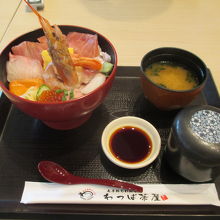 三井アウトレットパーク木更津店フードコート内にあるレストラン。ちらし寿司は3種類。その中で、コストパフォーマンスがとても抜群なのが、上花ちらしです。エビは大きくプリプリで、臭みもなくとてもおいしいです。まぐろ、ネギトロ、サーモン、いくら、白身魚とボリュームも最高!。とても満喫できるちらし寿司でした。