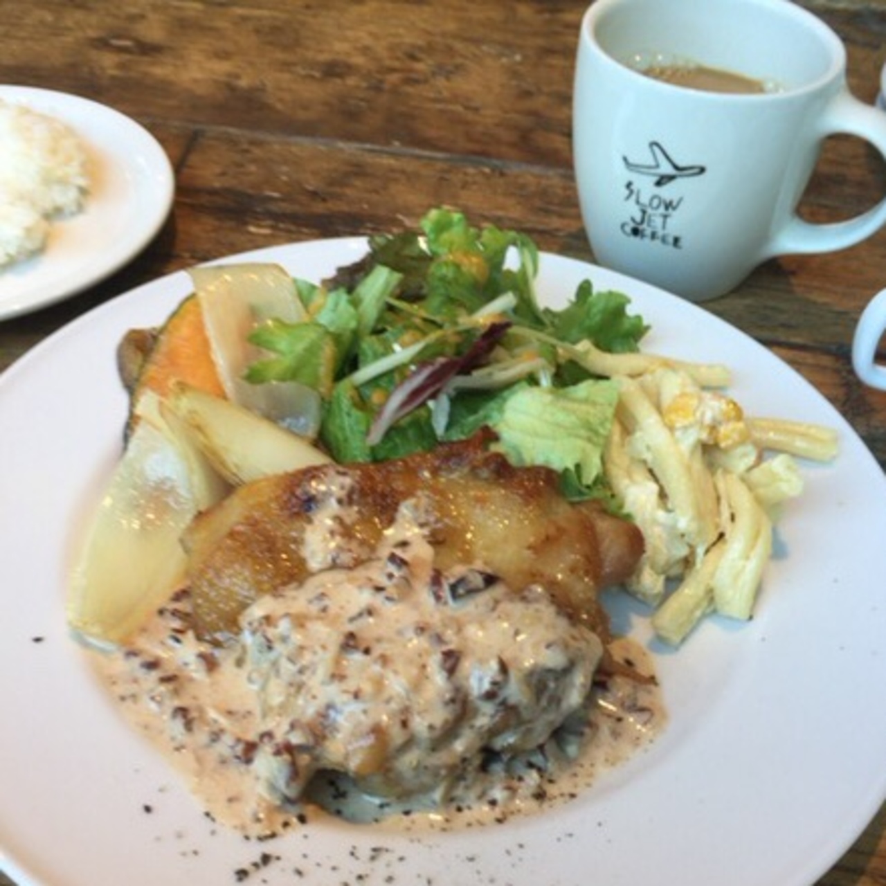 ランチタイムには、パスタやチ お肉をメインとしたセットメニューがあります。