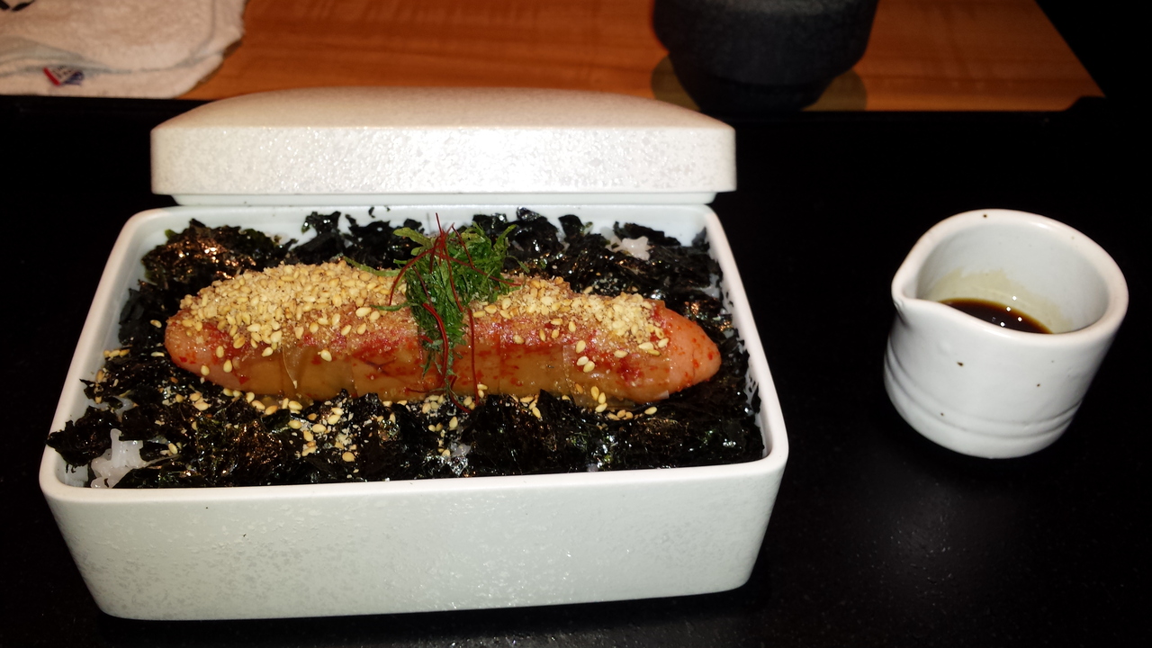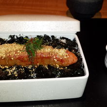口コミで紹介されていたので、今回、始めて食べに行きましたが、ふ~んでした。こじまりした蓋付きの陶器の重の内にご飯と刻んだ海苔の上の真ん中に"明太子"がのっていました。辛さの好みをはじめに選び、その汁をかけて食べますが、、、
