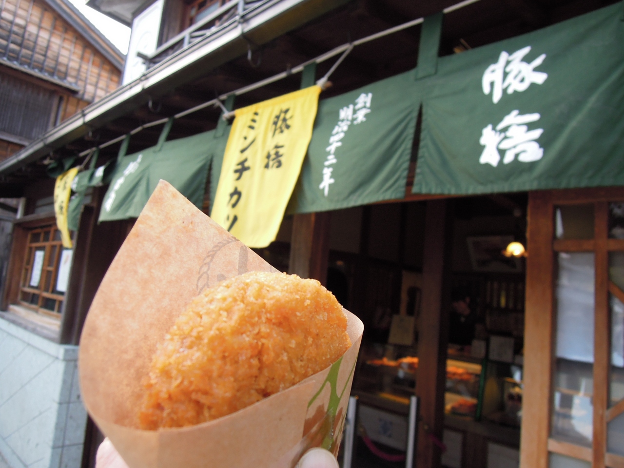 伊勢神宮のおかげ横丁にある牛肉のお店。豚は捨て、牛肉専門で!という名前の由来が面白い。コロッケはソースなしでもしっかりと味が付いていて旨味を感じられます。衣もサクサクしていました。伊勢に来たらまた食べたいです。