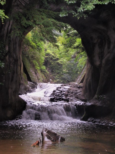 無料駐車場から、平坦な遊歩道を歩くと、直ぐに名所の滝、洞窟に行けました。