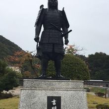 鳥取城址には、仁風閣・鳥取県立博物館・岡野貞一歌碑と見所がほぼ一箇所に集まっていますが、この吉川経家銅像はちょっと離れています。お堀の外側を市役所の方に歩いて行くとありました。吉川経家は、豊臣秀吉の鳥取城の水攻めの時に毛利方の武将です。