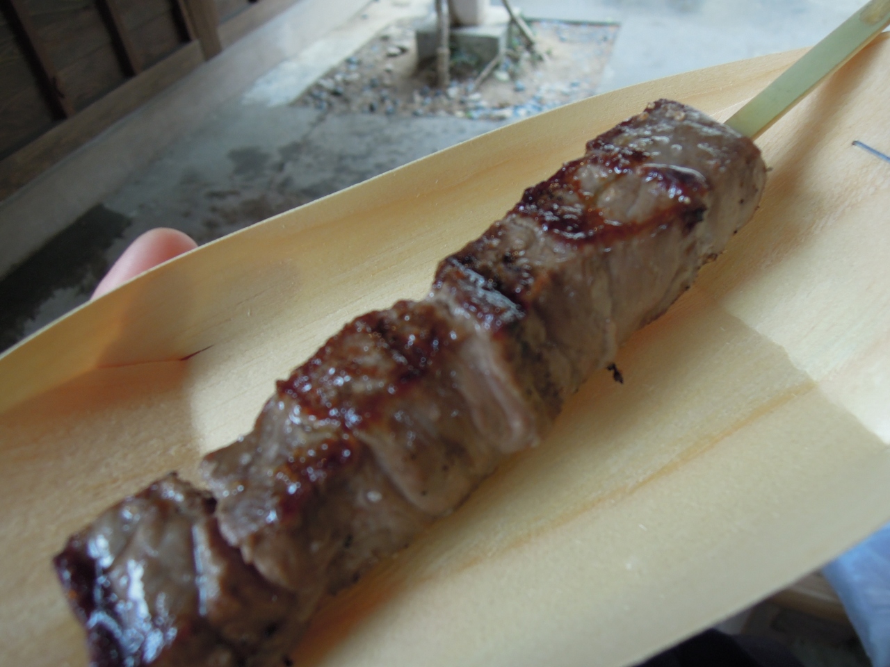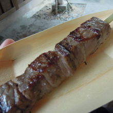 味付けはシンプルに塩こしょう。サイコロ型の肉で食べ応えあります。タレが苦手な方にはおすすめです。脂身も少なく食べやすかったです。一つのお店に入って食事をするより、少しの量でいろんなモノを買い食いできるのお店がたくさんあり、おかげ横丁は楽しい!