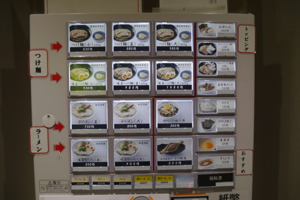 梅田駅の改札内というところにありながら、このとき以来行ってないのが自分の中での答えかな…といったところです。つけ麺を頼みましたが、けっこう、味が濃いです。つけ麺のつけ汁は、あとでスープ割りをするのが前提だから濃い目のが標準…とはいえ、それにつけても味がだいぶ濃いです(個人の感想です)。濃いめが好きな人にはおすすめできるのかもしれません。