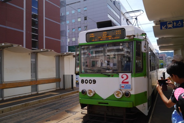 路面電車、だいすきです。ここの函館の路面電車も、例にもれずとてもよかったです。この日はちょうど函館まつりの日だったのですが、ふつうの車両とはまた別に、“路面山車”といったような、飾りのなされた、見て楽しむためだけの車両がはしっており、なかなかに楽しかったです。北海道だからか車内に冷房がないことにもおどろきです。うちわがそなえつけられていました。