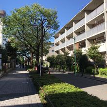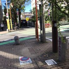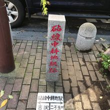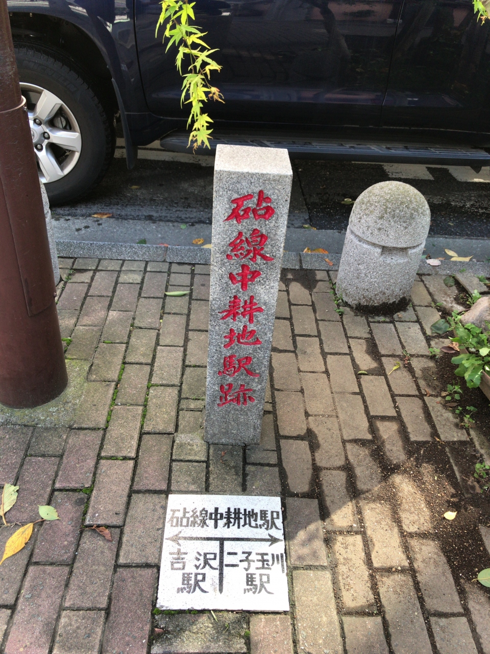 ここも中耕地駅跡の碑が二子玉川商店街の交差点にあります