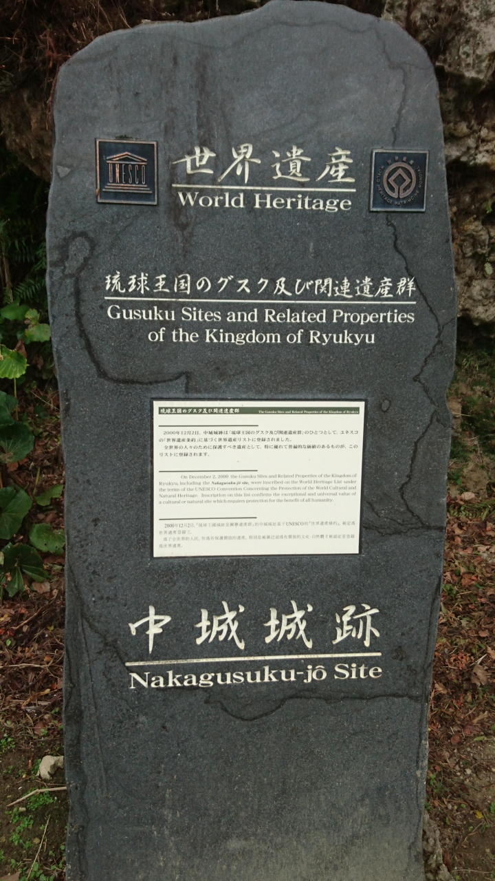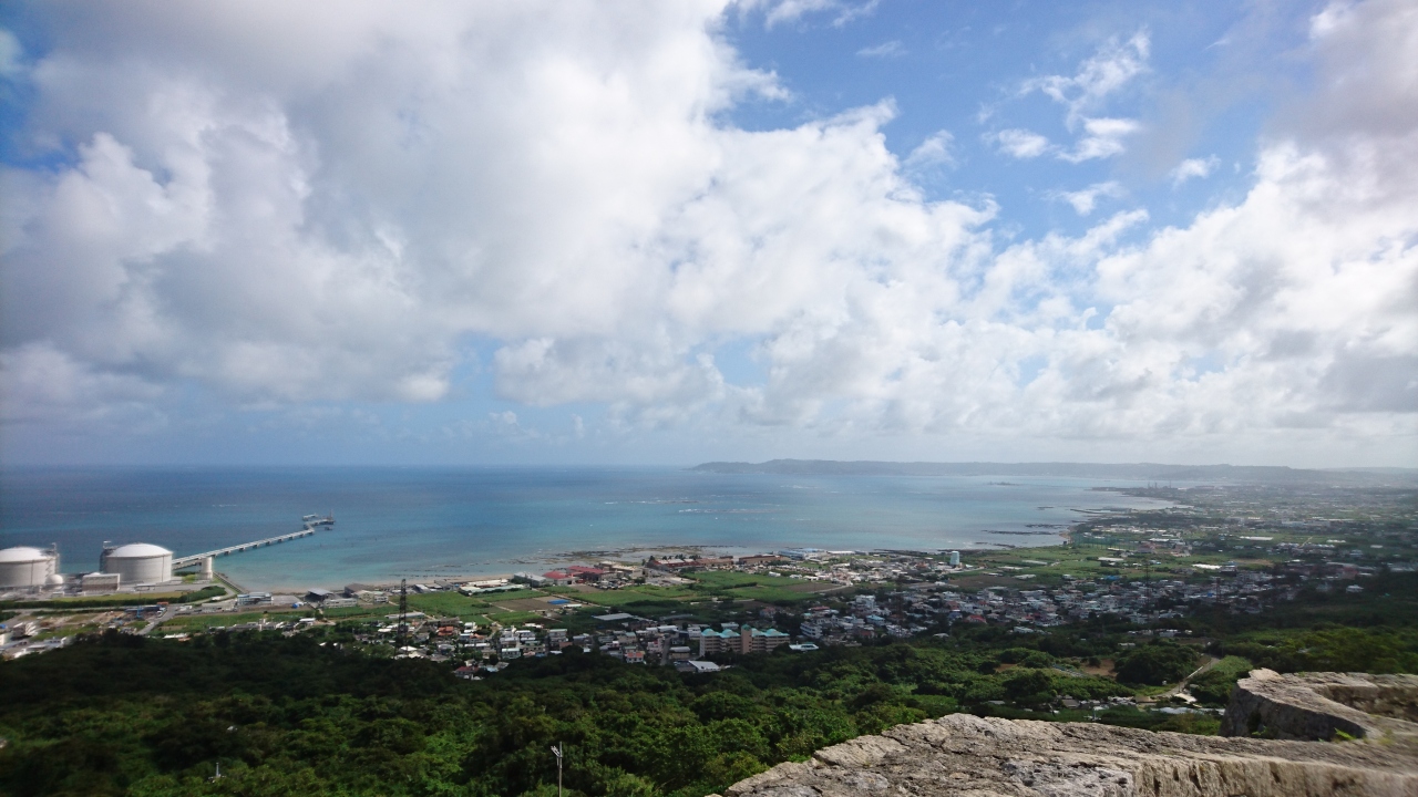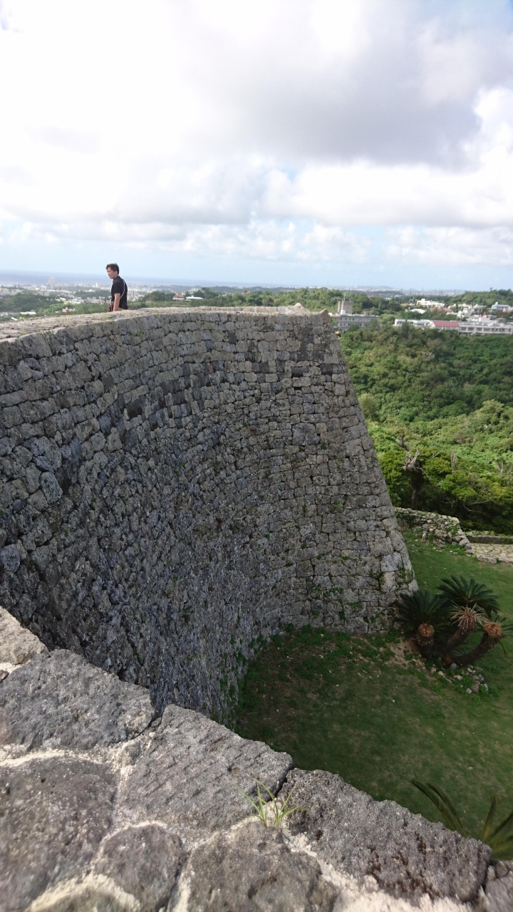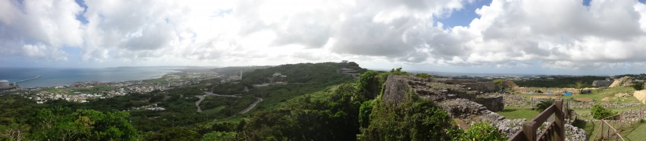 沖縄旅行で世界遺産の中城城跡に行きました。券売所で入城券を購入して、カートに乗って高台に上がります。高台に着くと、大きな城壁がありました。さらに先へ進むと展望台があり、展望台からは太平洋と東シナ海を同時に眺めることができました。太平洋と東シナ海を同時に見るスポットは、なかなか無いと思いました。