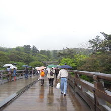 内宮への入口、五十鈴川にかかる宇治橋は日常の世界から神聖な世界へ、そして人と神とを結ぶ架け橋といわれています。たしかにこの橋を渡った先は、別世界に足を踏み入れたような感覚でした。正面に立つ大鳥居もとても美しく、まさに聖域に入っていくような場所です。