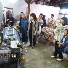旧来住家住宅より3分ほどでのこぎり上のアトリエショップに行ける。ここは江戸時代から生産されている播州織りの出発点です。のこぎり型の屋根が今も残っており昔懐かしい路地の中にある。入ってみるとスタッフに頼めば織り機の敷布実演などがあり、手機織り体験も出来る。店内は販売もしており手ごろな値段で播州織りを求めることも出来る。