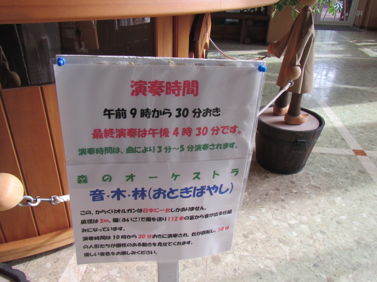館内では、午前9時から午後4時まで、30分おきにからくりオルガンの人形の演奏があるので、訪れたならぜひ、見ていくとよいです。