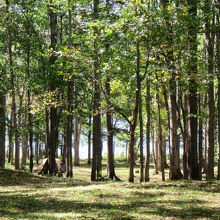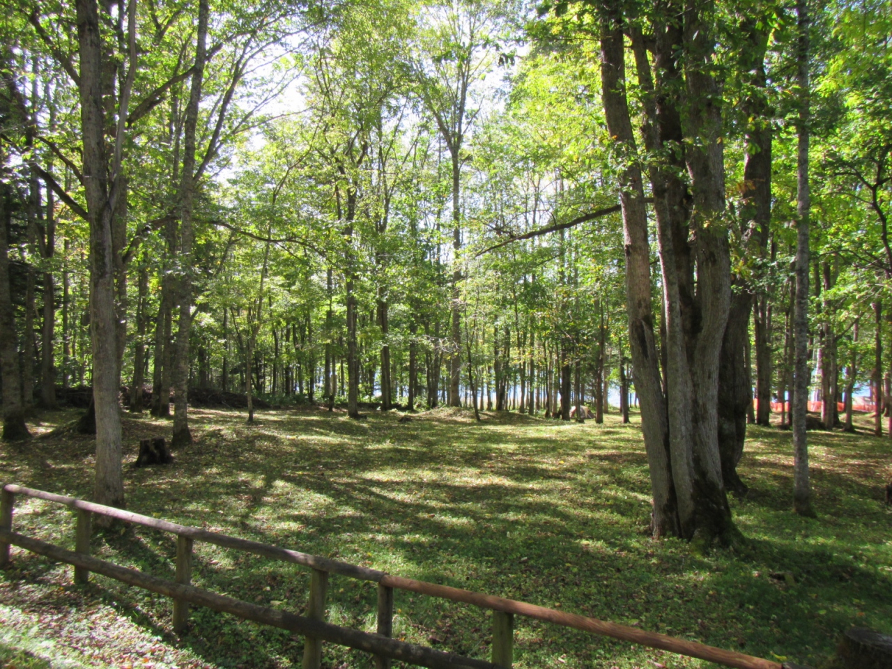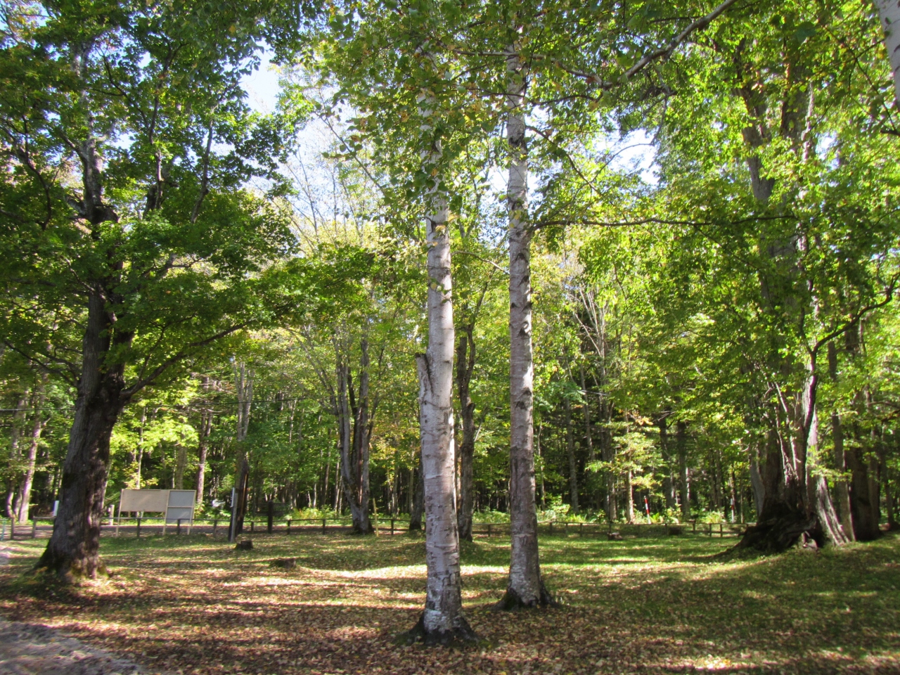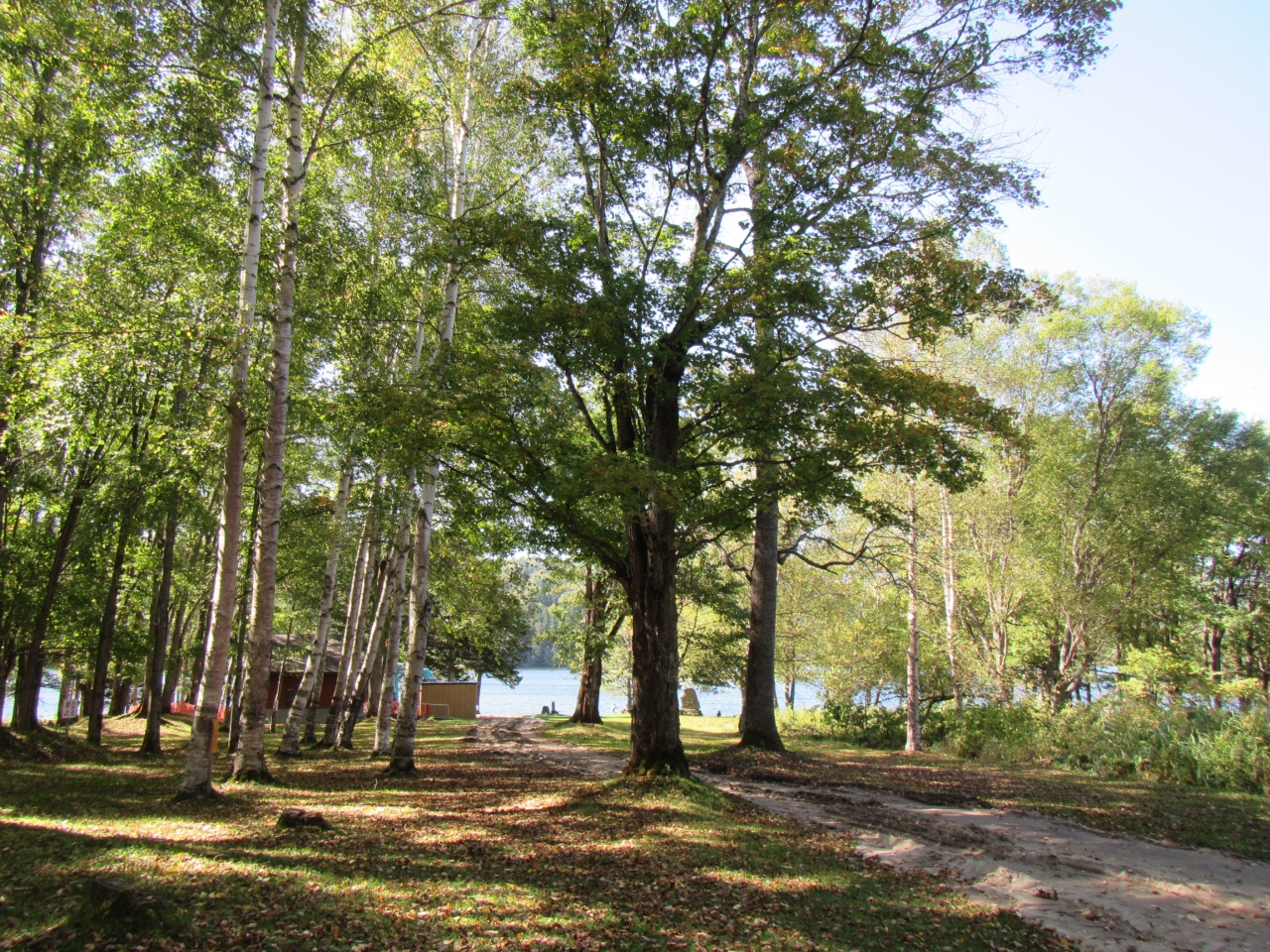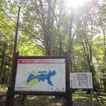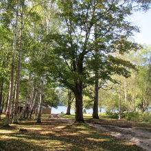 樹林下にキャンプスペースが整備され、トイレもありました。