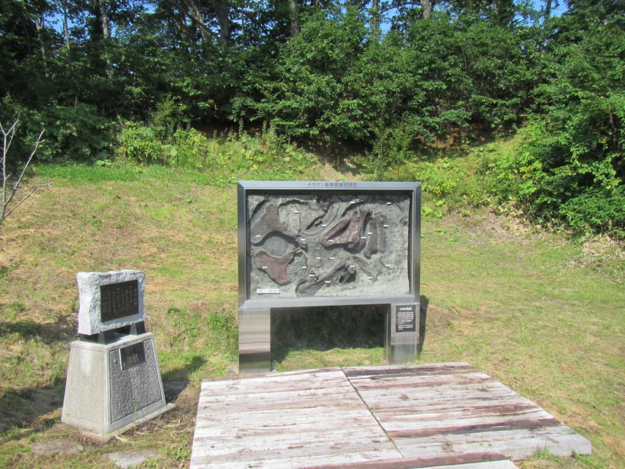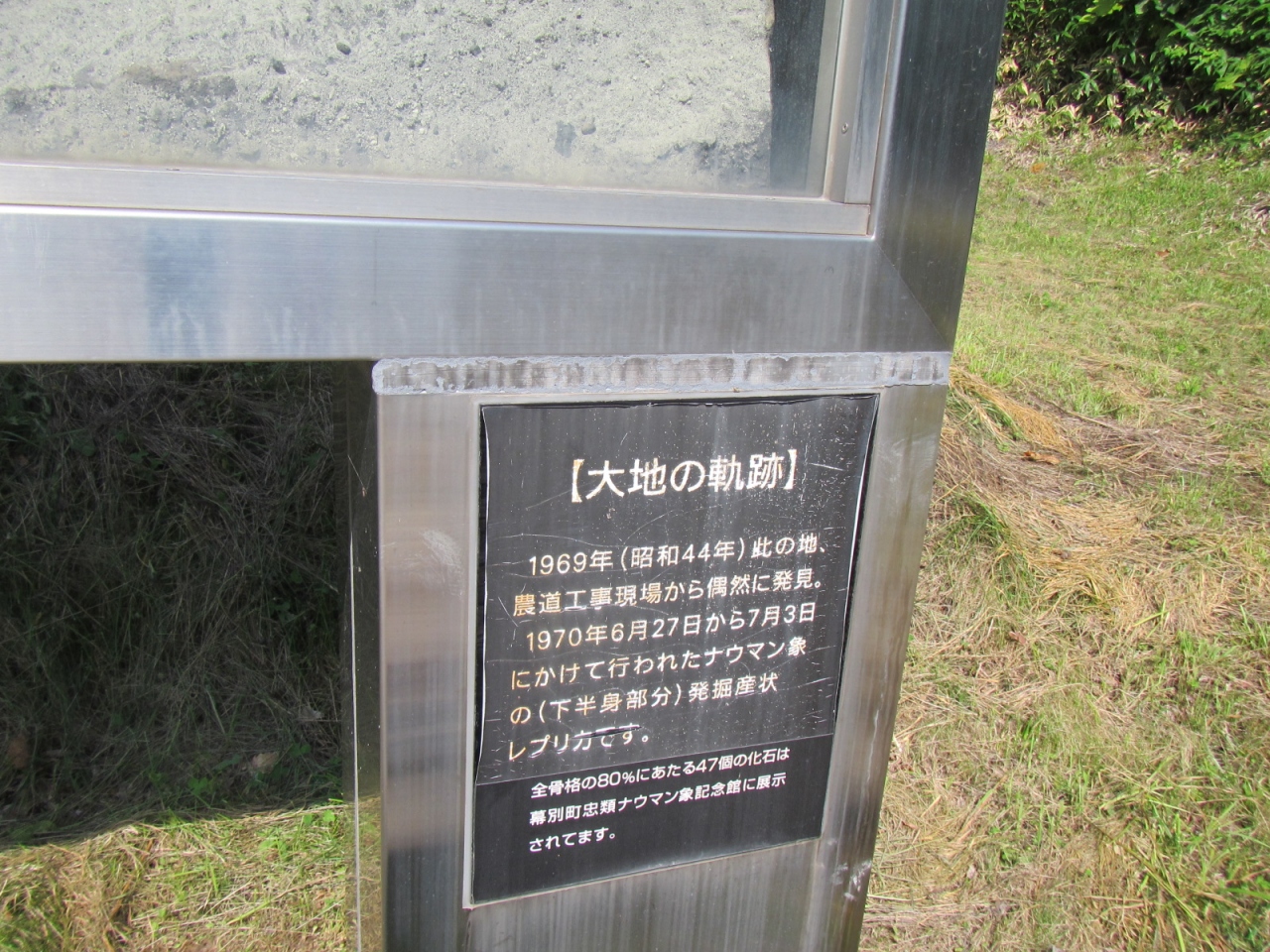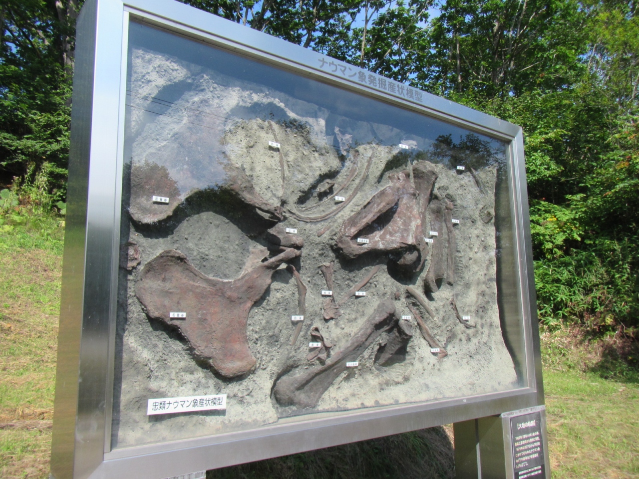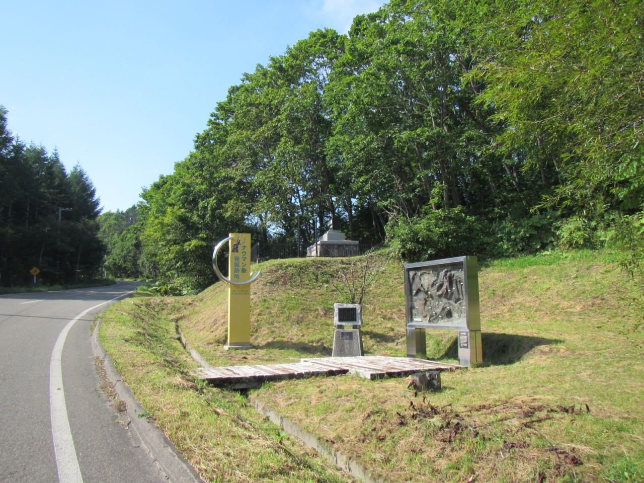 ナウマン象発掘時のレプリカが展示してあり、石碑などが建っていますが、現地であるこちらよりも、広尾国道236号線沿いの忠類のナウマン象記念館(入館¥300円)を見学した方が、発見当時の様子や経緯もよく分かり、更にダイナミックな展示が見られます。