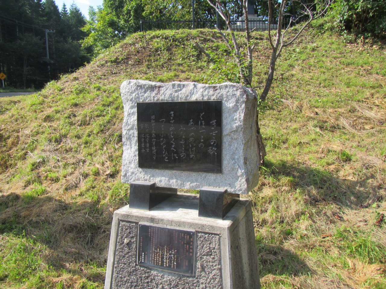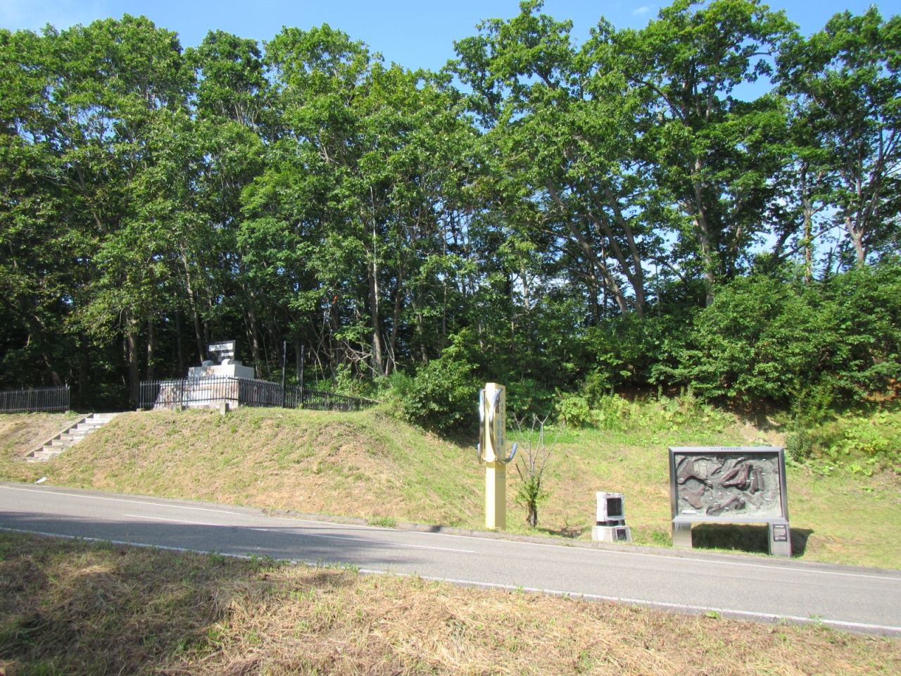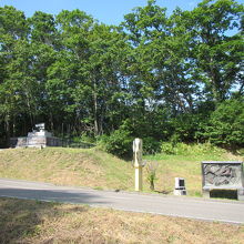 モニュメントから道を挟んで、車数台が停められる駐車スペースがあります(勿論、無料)。