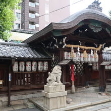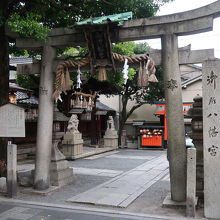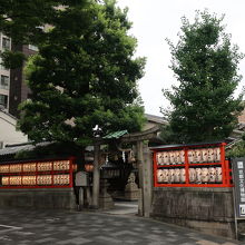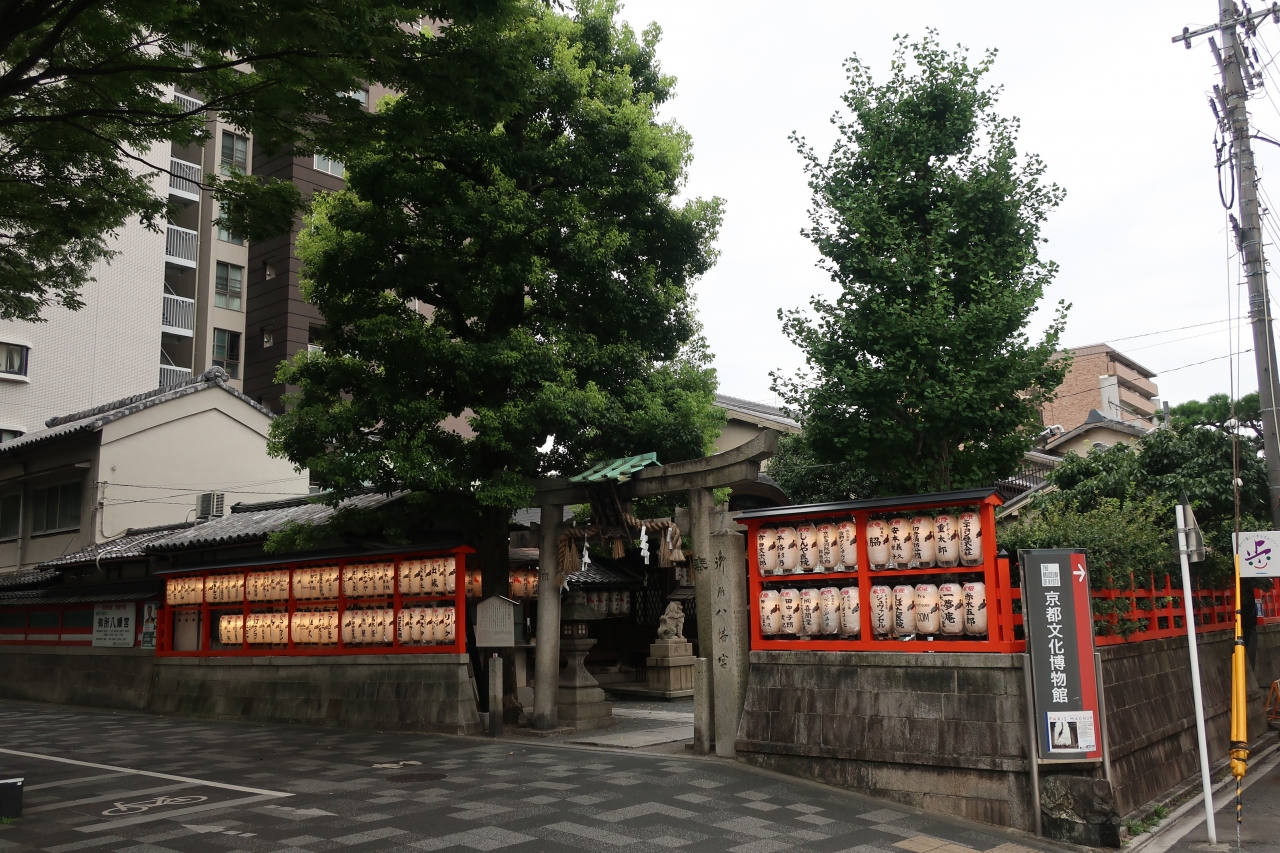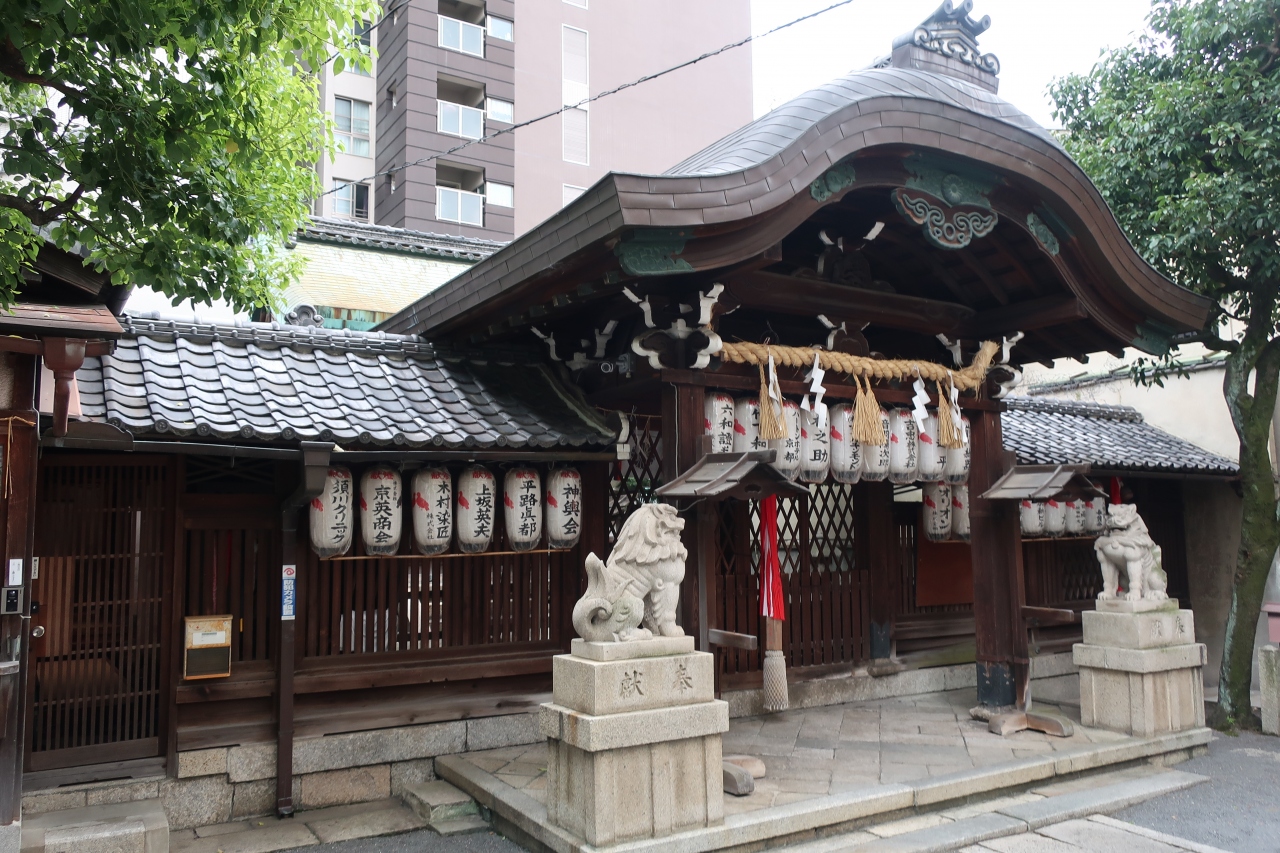 御池通りの南側、高倉通りの角に御所八幡宮があります。応神天皇、神功皇后、比売神を祀る神社です。もともと御池堺町西南角御所八幡町にあったのが太平洋戦争の強制疎開で今の地に移転したそうです。足利尊氏にゆかりのある八幡宮ですが、とても小さな社です。