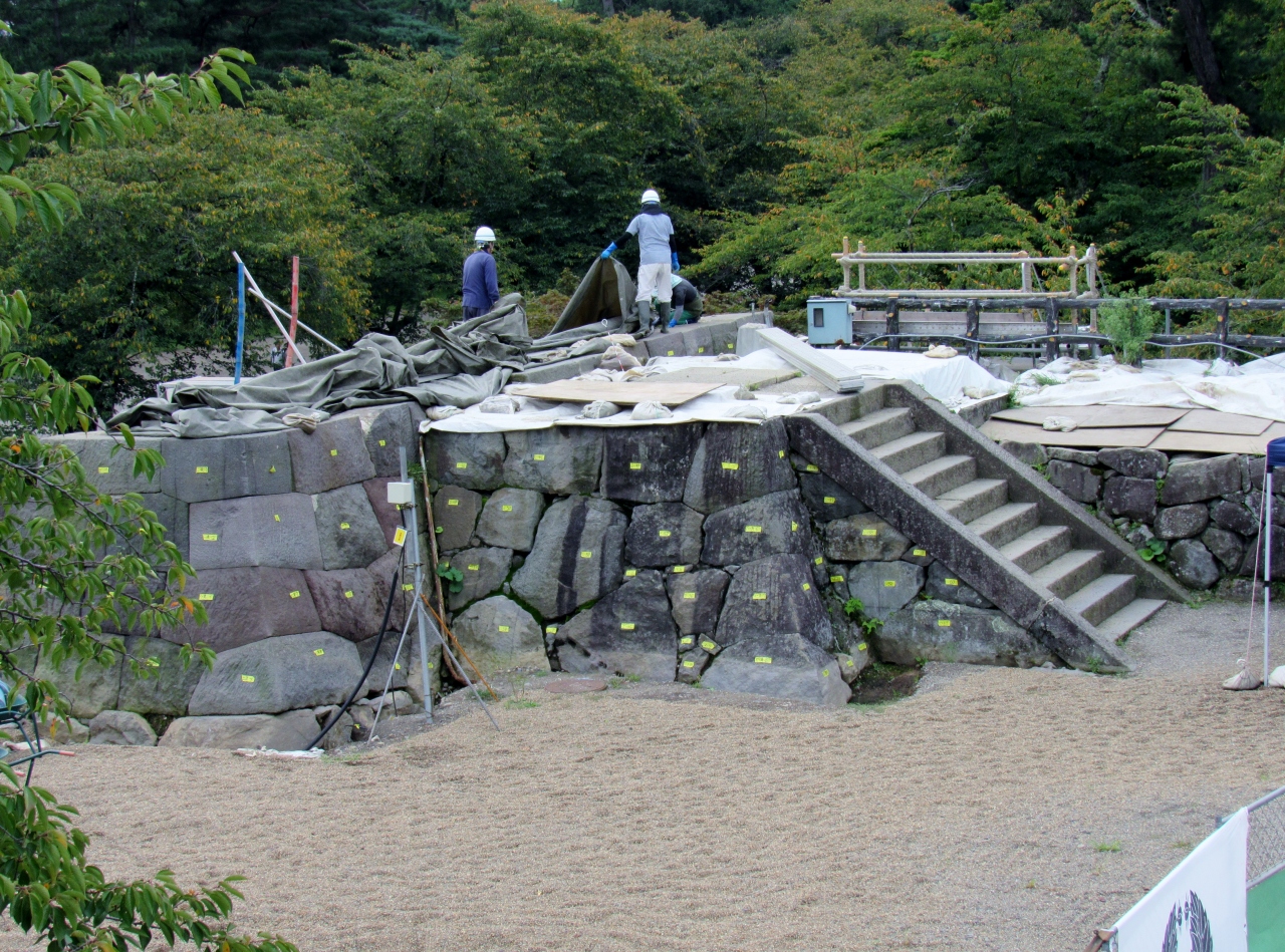 有名な写真撮影の橋から見えるのは、生垣工事です。でも今しか見る事の出来ない貴重な風景なのでそれはそれで興味深いです。