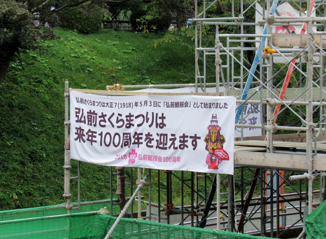 桜の花の美しさでは有名な弘前公園ですが、現在は弘前城本丸石垣修理事業のために天守閣の曳屋を行ったので、赤い下乗橋から見える天守閣は当分見ることが出来ません。