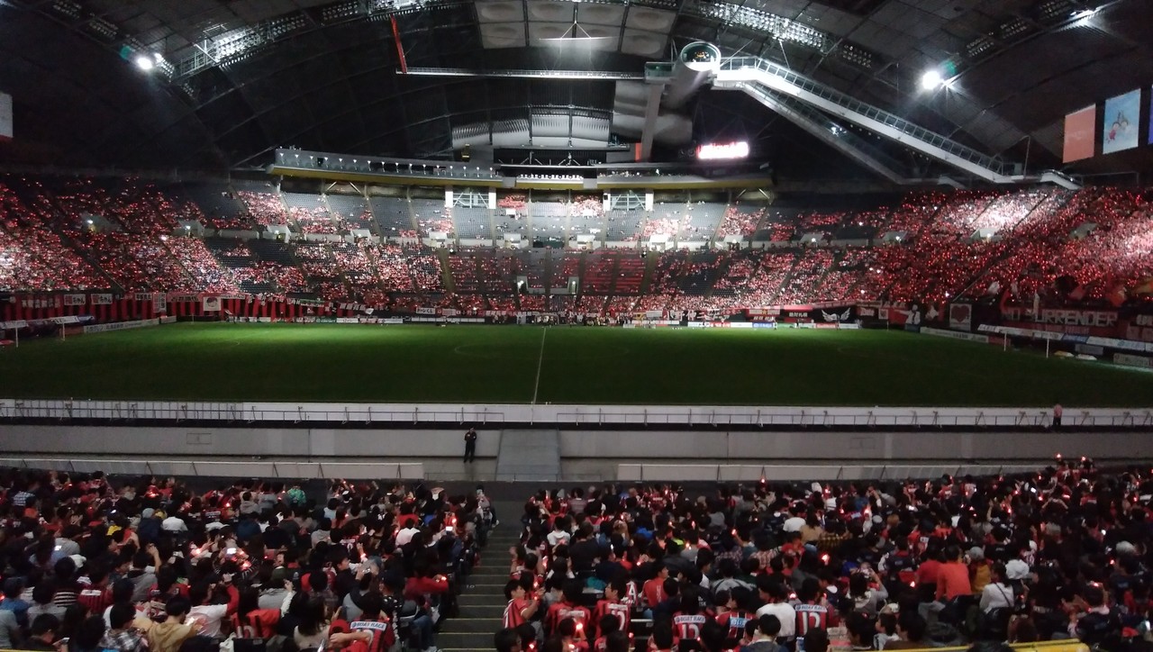 臨場感はないスタジアムですが、傾斜が十分あって見やすいのと、サッカー場としては国内唯一?天候に左右されないのが大変助かっています。